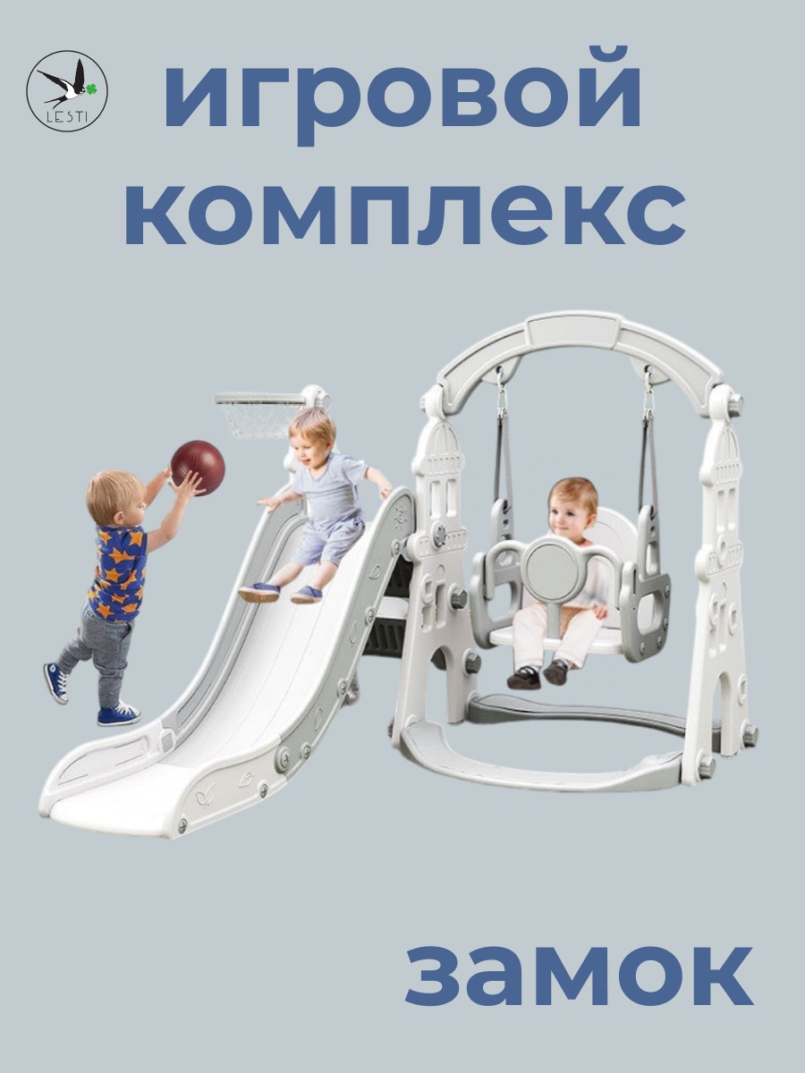 Игровой комплекс LESTI Замок (горка, качели, баскетбольное кольцо), белый
