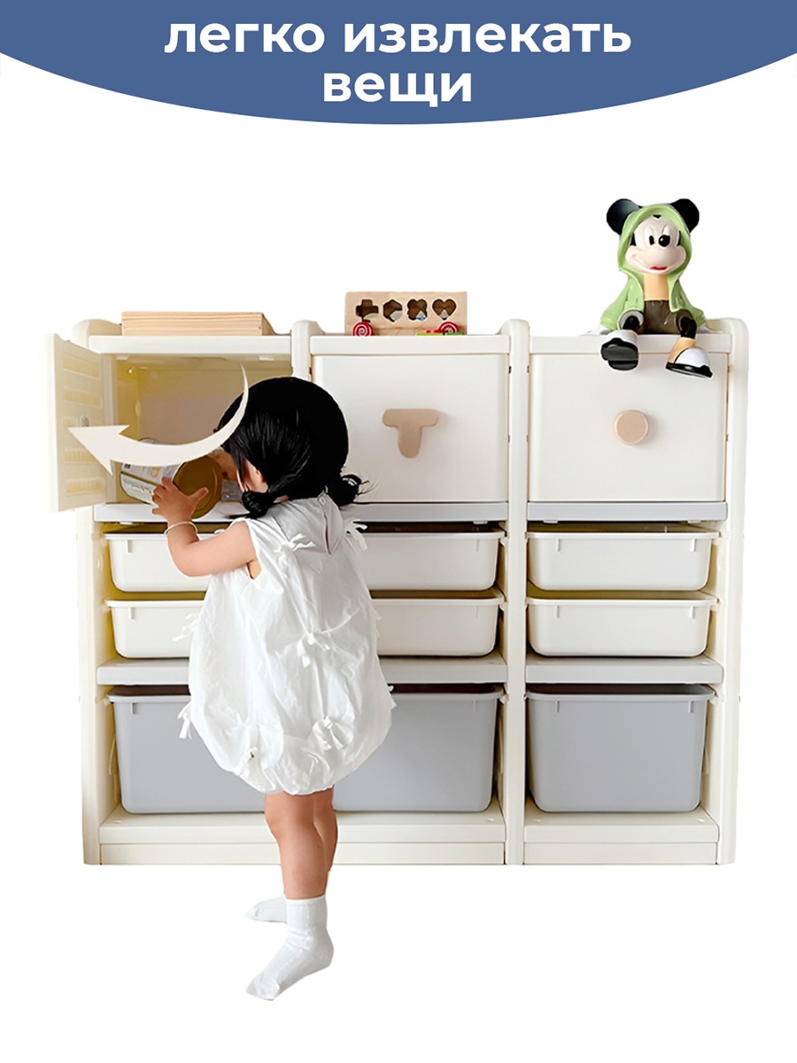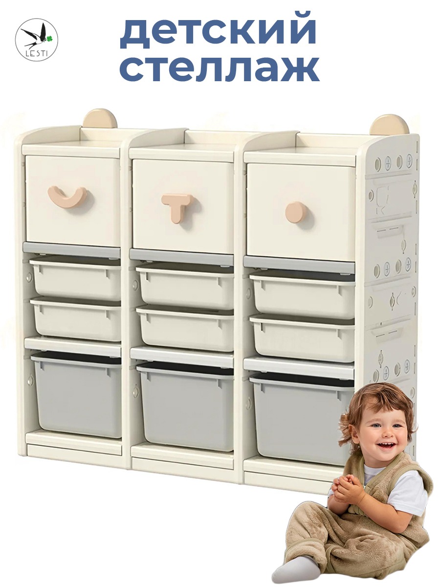Стеллаж LESTI UTO вместительный, устойчивый и удобный в использовании. Подарите своему ребенку уют и комфорт - выберите наш детский шкаф для игрушек!