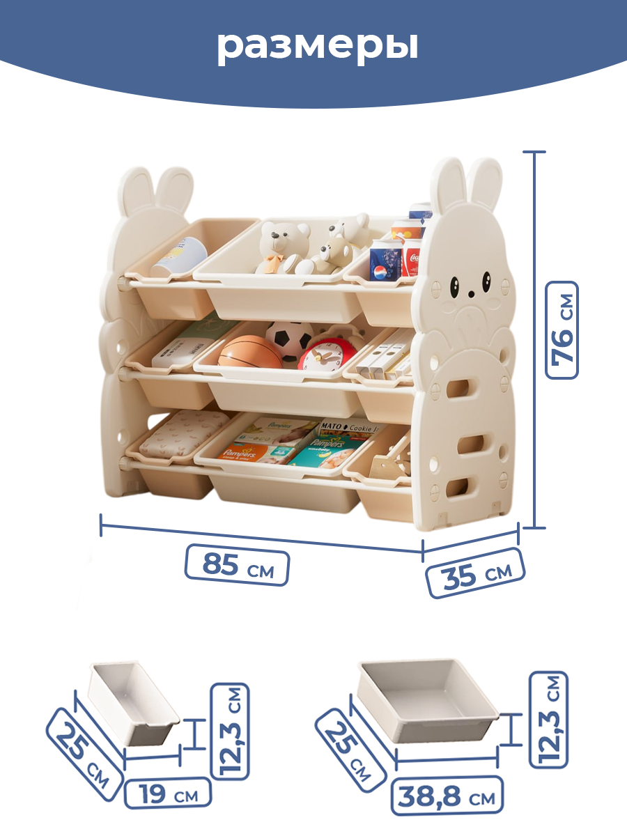 Описание Стеллаж для игрушек Зайка 85х35х76 см, белый