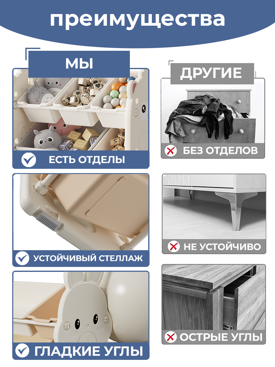Стеллаж для игрушек Зайка 85х35х76 см, белый, описание, фото о товаре.